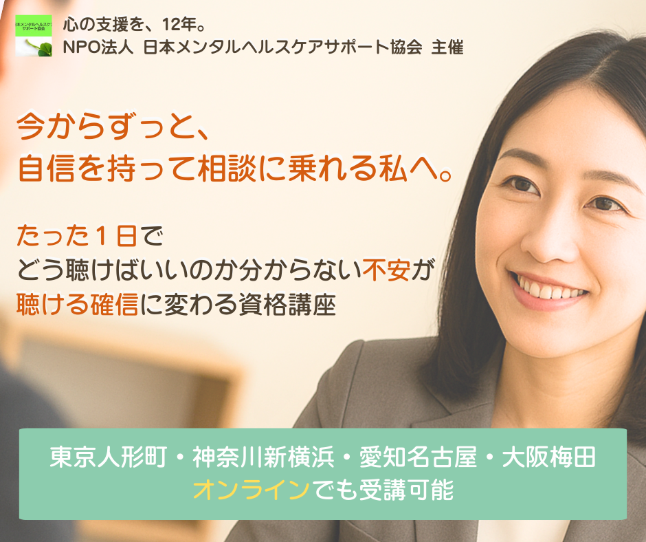 この講座は、不安を抱えたまま聴く人から、安心して話を聴ける自分になるための学びです。