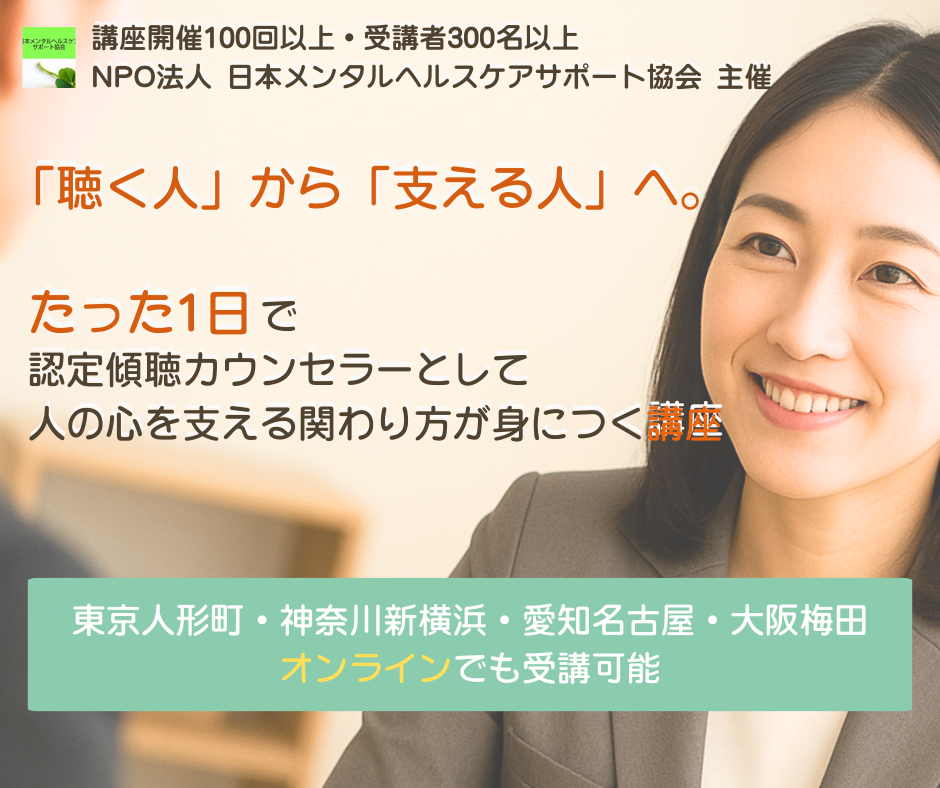 その話の聴き方、関わり方を身につけるのが、認定傾聴カウンセラー養成講座です。