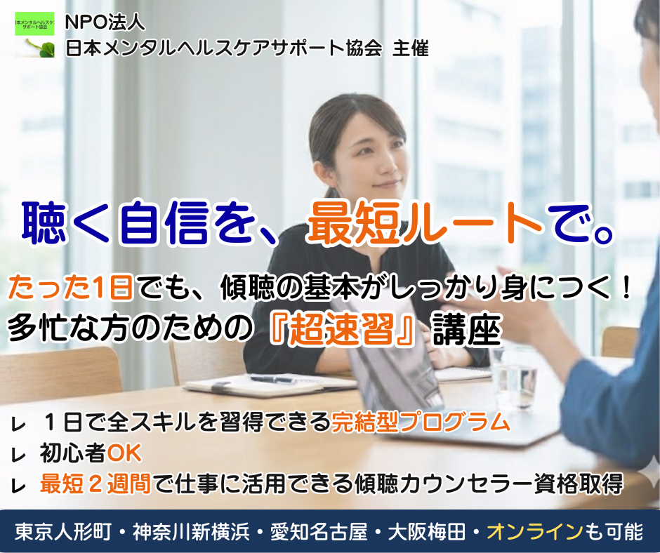 今までそんな聴く難しさを感じたのは、単に『聴く技術』を知らなかっただけかもしれません。このまま自己流を続ければ、生涯「聴く悩み」と付き合っていくことになります。