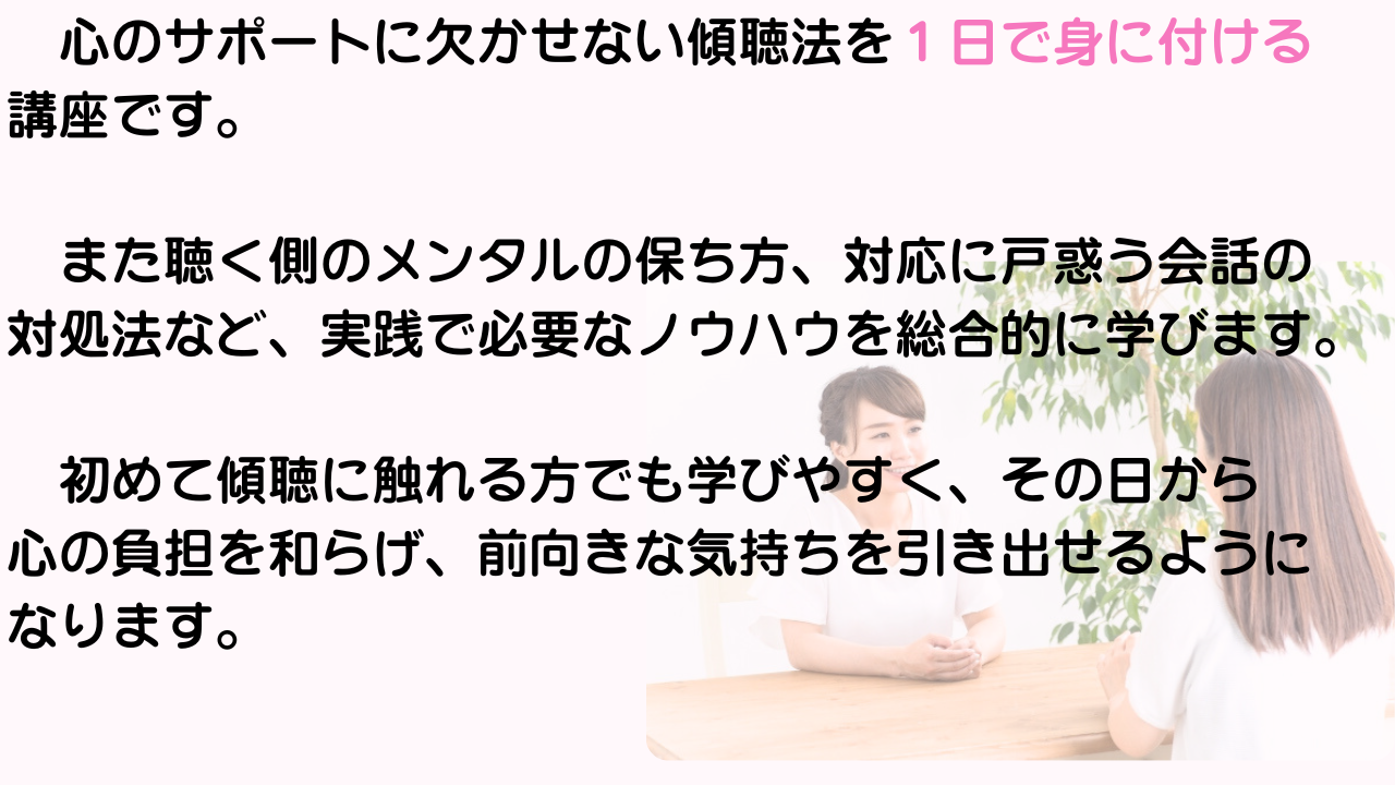 ただ傾聴を学ぶ講座はたくさんあります。